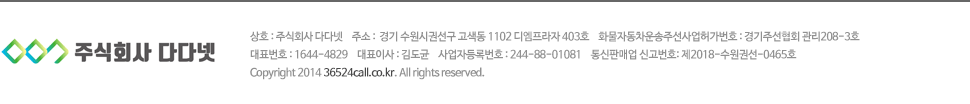 | 할증요금 | 영업외시간에는 소정의 할증료가 적용됩니다. | ||