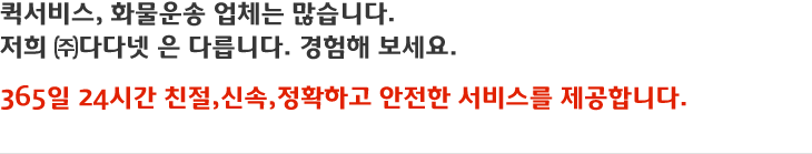 | 서비스지역 및 가격 | 서울/경기 ↔ 5대광역시 및 주요도시, 기본요금 25,000원부터 차등 있음. |